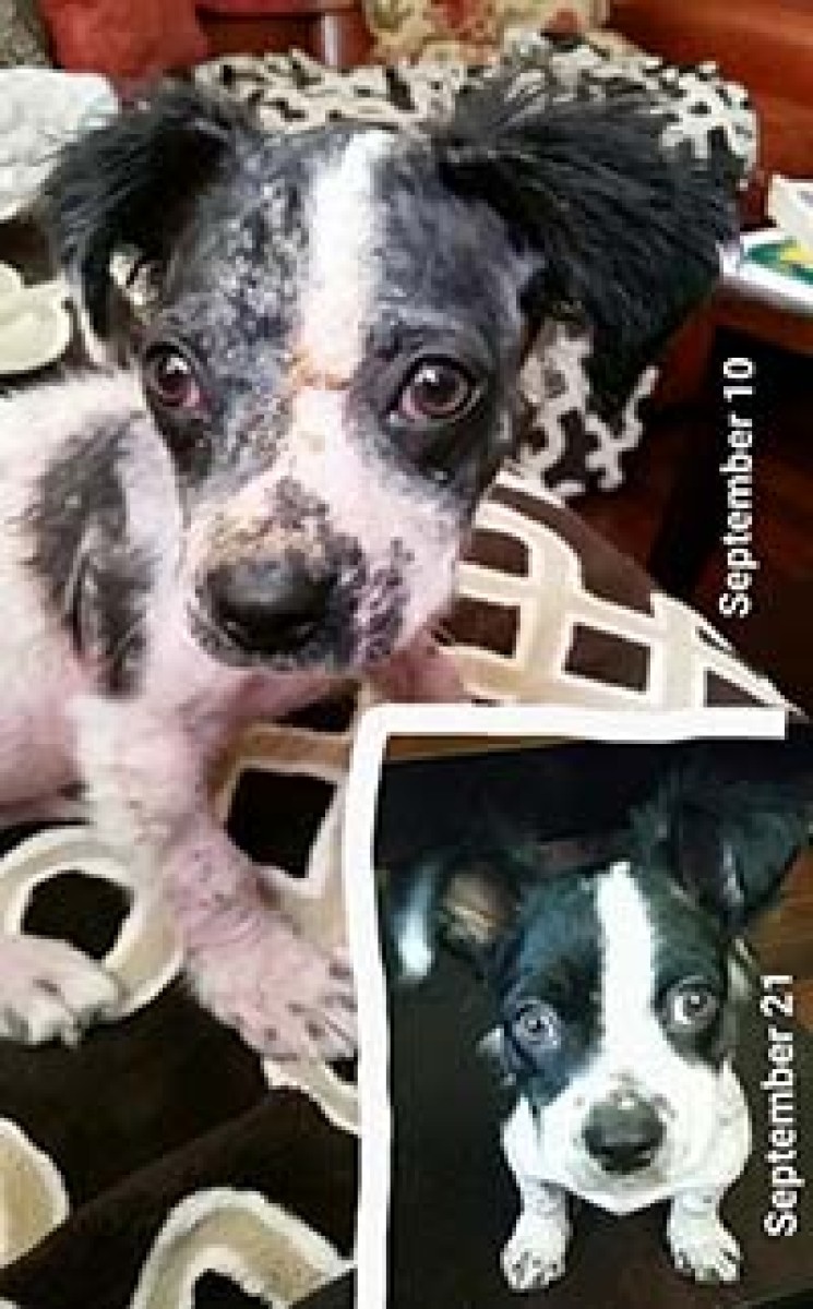 Fruffy came in with a very severe case of mange which is a very treatable skin condition. As you can see from these photos, she has blossomed since coming in! She's sweet, playful and loving as can be. Hopefully she will be going home very soon.