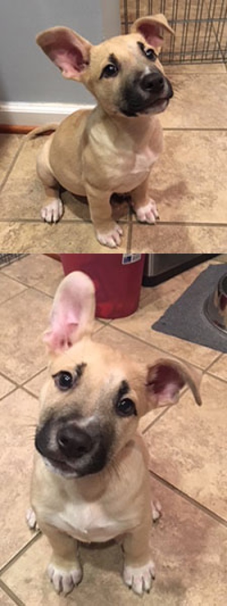 Greg was rescued from an abusive owner. He is very, very sweet and playful. He is very smart and is already learning to how to sit and shake.