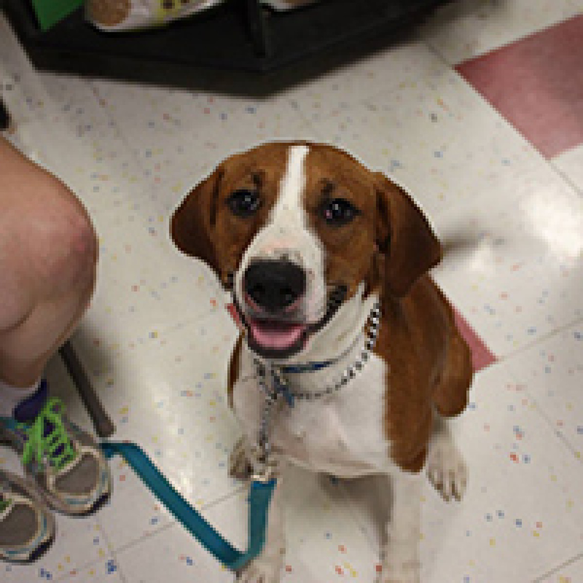 Hi! My name is Missy and I am an adorable, playful and happy puppy. The volunteers loved me and wanted to make sure I made it out of the shelter alive. So they reached out to rescues for help in saving me. I am learning my manners but sometimes forget, after all, I was only born 2/11/2018. I will probably be around 50 to 60 lbs. I have the prettiest coloring, chestnut brown and white stockings, chest and nose. Right now. I am a little too big and too puppy to be around toddlers, I might knock them down until I learn better and grow older. I love being a puppy. I get along great with my other canine friends, my best friend is a 8 pound puppy who is a month older than me but I tower over him and weigh much more. We play very well together. I love to run around the back yard and my foster thinks I was with the grace of a cantering horse. My foster is teaching me at the same time she is teaching my friend. I love everyone and would love to meet you. Maybe you and I can be forever buddies