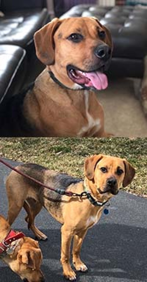 Remi is an incredibly sweet Hound mix and is the definition of a Velcro dog. Remi wants to be with his person 24/7. He loves snuggling up on the couch and sleeping in your bed. Remi has had some obedience training and knows sit, down, and how to give his paw. He is house trained with zero accidents. Remi loves children and other dogs. We are not sure about cats. Remi will need some extra love and attention to help build up his confidence. He may do best in a home with another dog but that’s not a requirement.