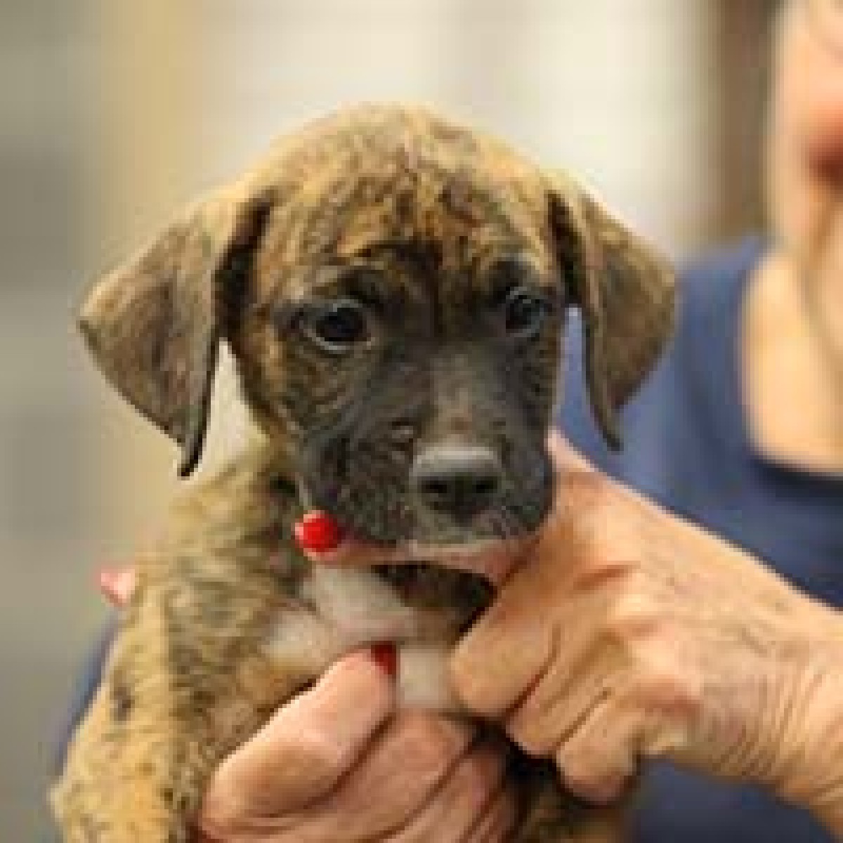 These 7 Boxer mix pups were born on 8/9/19. Their mom was abandoned along with several other animals in a rural area of West Virginia. It was an abusive hoarding situation. A new rescue partner of ours took mom in. When she got to the vet she was extremely emaciated with a severe case of mange and she was pregnant. A board member of our new partner is keeping mom and asked us to find homes for the puppies.