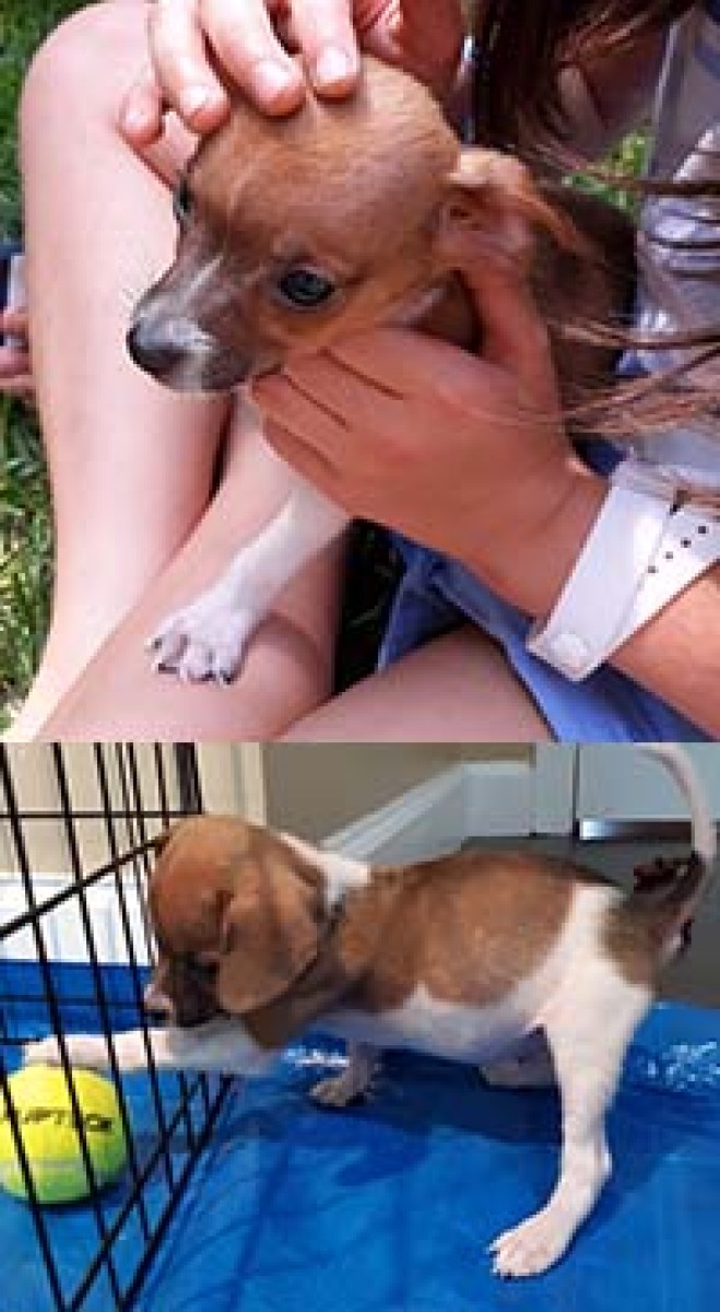 Percy is a precious and sweet little boy who's favorite thing to do is to crawl up on your lap and cuddle. He's a teeny tiny little boy who, at 12 weeks old, weighs about 2 to 3 pounds. Percy is rather calm and as cute as can be. He loves little children and gets along well with his four siblings. This poor little pup was left at a shelter by his owner.