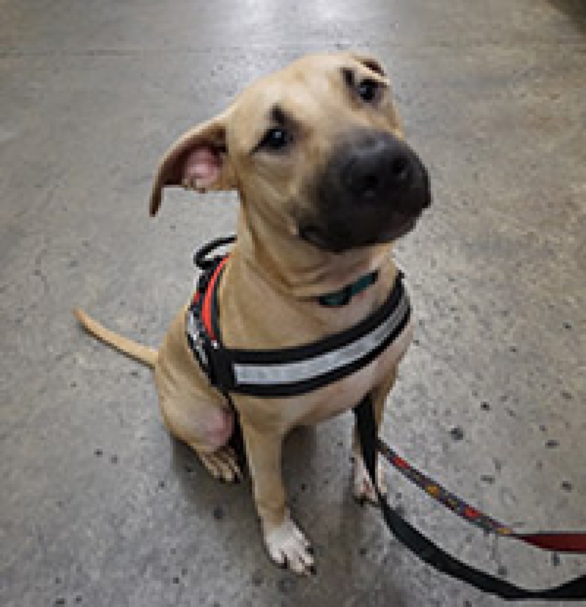 Bubba/Remi came into rescue when her mother was dropped on the side of the road in West Virginia. A day later her mother gave birth to five puppies including Bubba/Remi. This young guy is the happy go lucky type, but has a moderate energy level. He is sweet with kids but is still learning manners. He is working on the commands sit and lay down. He also is working on leash training. The good news is he is very smart and picks things up quickly. Remi is housetrained and crate trained, and rides well in the car. He loves other dogs and would do well either as an only dog or in a pack. He has the personality of a Mastiff but should be smaller than a lab when full-grown. We like to say he is a Mini Mastiff!