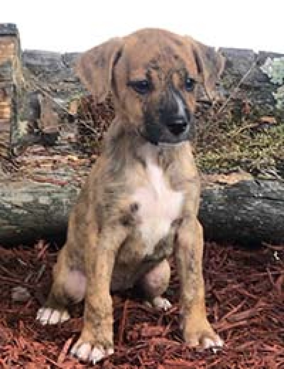 These 7 Boxer mix pups were born on 8/9/19. Their mom was abandoned along with several other animals in a rural area of West Virginia. It was an abusive hoarding situation. A new rescue partner of ours took mom in. When she got to the vet she was extremely emaciated with a severe case of mange and she was pregnant. A board member of our new partner is keeping mom and asked us to find homes for the puppies.