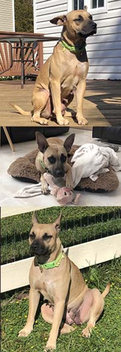 Hi! I’m Angel, and I’m as beautiful as my name! The amazing volunteers with A Forever-Home rescued me from a shelter in the South after my family dumped me there just because I was pregnant. After getting comfortable in my foster family’s home, I gave birth to one bouncing baby boy, Arlo! He just found his forever home, and now it’s my turn! Since I’m young, I’m basically still a puppy myself! I am medium-sized, so I’m a perfect fit with all adults, kids and dogs. I love nothing more than to run around and cuddle with my foster family and my furry foster brother and sisters. I enjoy a good tug of war, playing with all kinds of toys and carrying all of my stuffed animals around in my mouth! I’ve never met a cat, so I’m not sure what I would do with one! I’m very energetic and fun, and it would be great if I was adopted by a family who is active and enjoys playing with me and giving me lots of attention. Having a canine brother and/or sister would be a bonus, too! I’m housebroken and crate-trained, but I need more time to master walking on a leash and learning training commands. I’m very smart, though, so I think I’ll catch on quickly! Sadly, I have been diagnosed with heartworms and will be starting my treatment process very soon. After that’s over, I will be spayed in January, and will be ready and raring to go home with my new family! If you don’t mind waiting a few months to start a new life with me, I promise you won’t be sorry! My foster mom says I’m a doll and strongly encourages you to send your application to [email protected] now so that you can virtually meet me. Don’t wait, because January will be here before you know it!