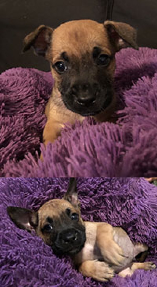 These 8 little puppies have definitely inherited their momma’s sweet demeanor. They are the quietest puppies you could ever imagine! They love to chew soft toys and play tug of war. And when you pick them up, they are as content as can be to be toted around and held close to your chest. While mom is a lab/pit mix, dad was likely a smaller guy so these pups are relatively petite. They love a camera, so let us know if you’d like to schedule a virtual meeting.