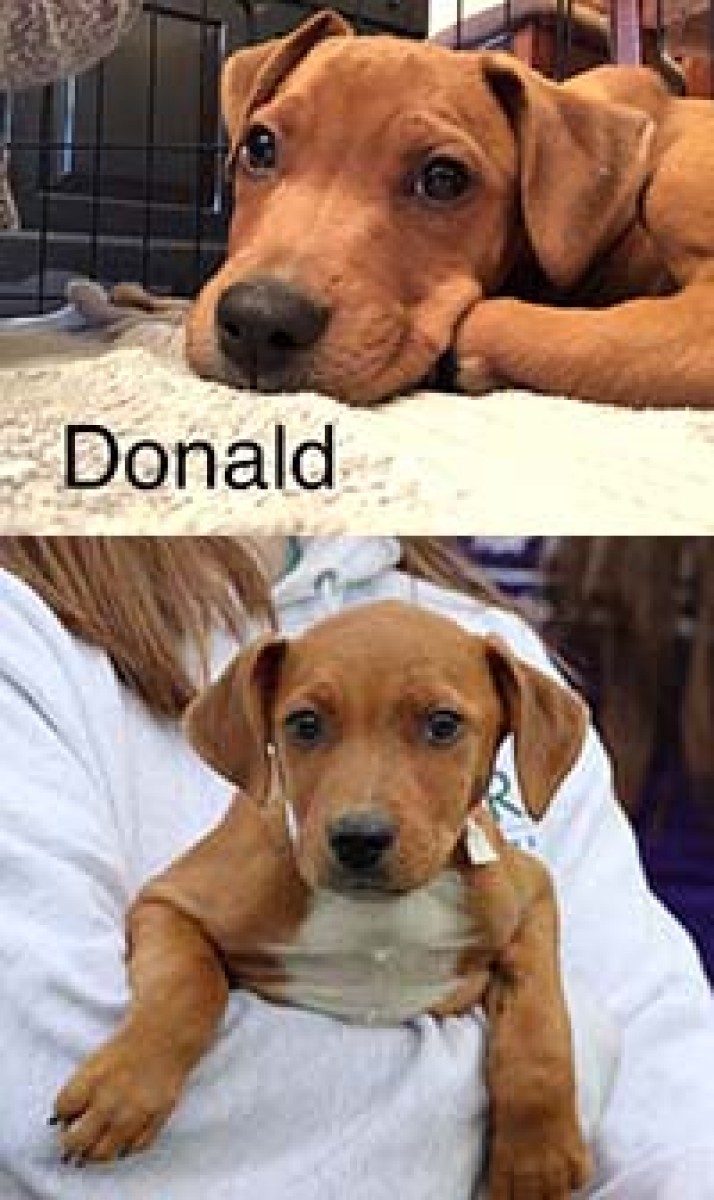 Donald is slightly taller than his brothers. He has a sweet disposition and routinely sits like a proper gentlemen to look around and assess the situation before jumping into action to play.