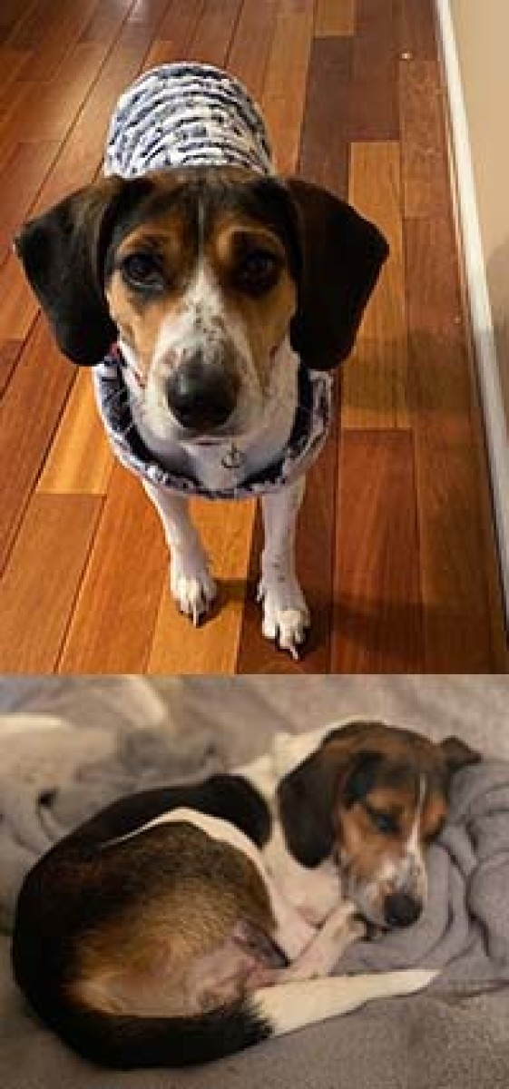 Rosie is a very sweet dog and has a phenomenal disposition. She very calm and attentive and great with our girls (13 and 9 years old). Rosie is playful, but not overly active and has great house manners. She is mostly housebroken, with the occasional accident. She loves going on walks and loves snuggling .