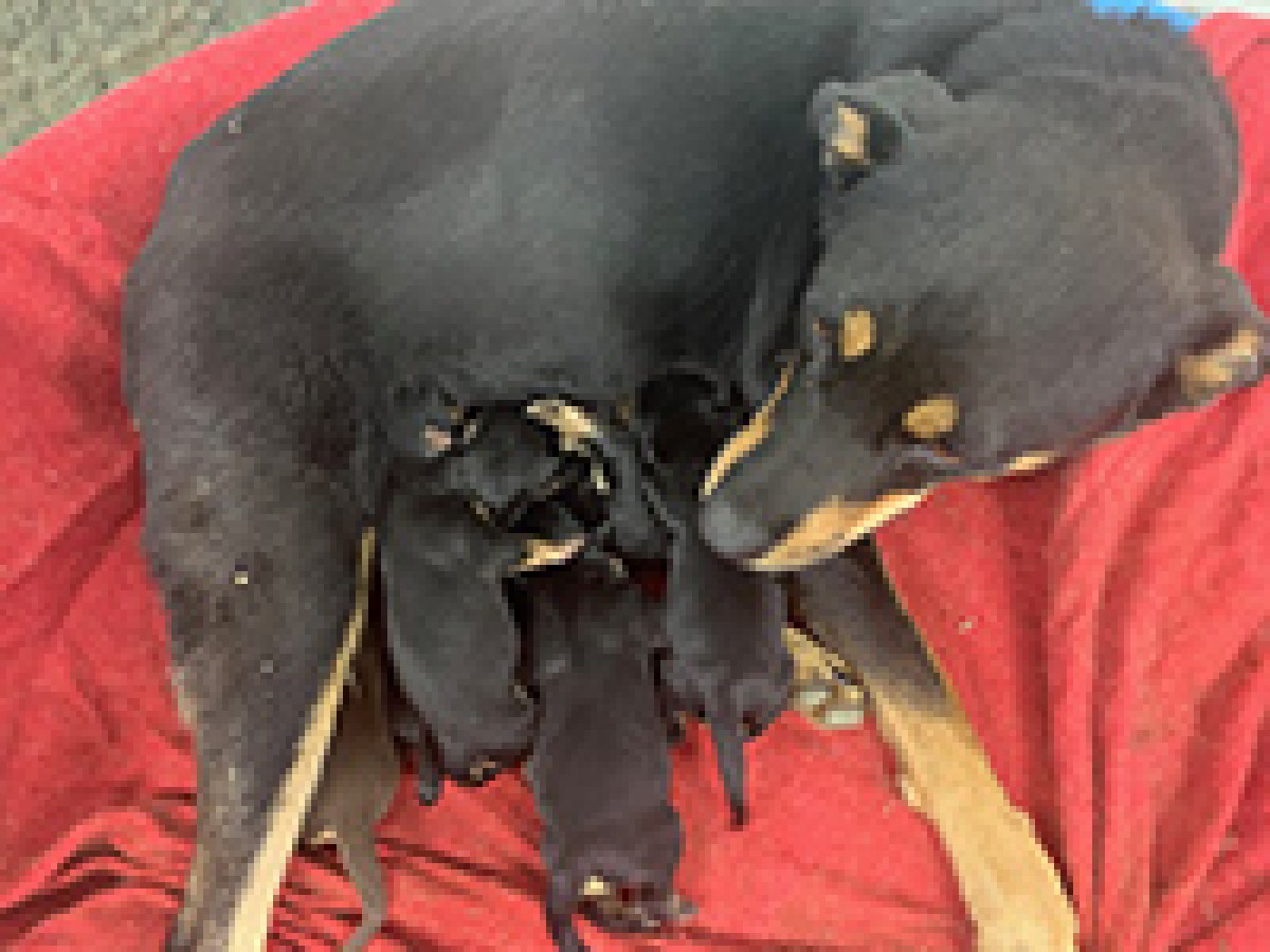 Katara is a Lab/Doberman mix. She was pulled from a rural pound in North Carolina to save her life. She recently (8/25/21) had 8 beautiful puppies. Unfortunately, one didn’t survive but the others are doing fine.