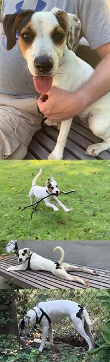 Dottie was rescued as a stray dog in southern Virginia. We believe she is a mixture of a Jack Russell Terrier and a Beagle. Dottie is full of love and energy. When someone sits beside her, she presses her whole body against them. When she sees the face of someone she knows, she pretty much flies. Dottie loves to go outside and run around in circles for the pure fun of it. She really enjoys chasing after balls and sticks and will bring the ball back 80% of the time. This girl is so smart! She is learning how to sit, shake, stay, etc. in a week with her foster family. She is learning not to pull on walks and doing well with potty training. Dottie enjoys other dogs (big and small), people, car rides, walking, fetching balls, and playing with toys. She is extremely alert; her fantastic smell and hearing ability keep her going all day. She will make an excellent watchdog and the family’s exercise leader. She would love a family with kids. She will keep up with children’s energy very well, and cuddle with adults when she rests.