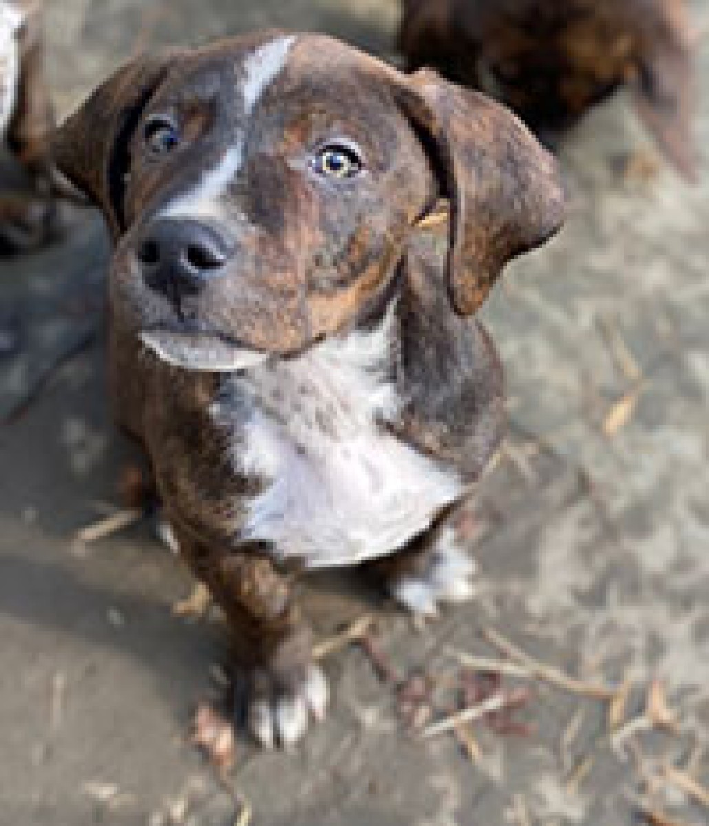 Eeyore's mom was rescued from the side of a road in Louisiana a week before giving birth to 9 beautiful pups. Eeyore is a sweet, handsome boy. He isn't the first to start playing but if enough of his brothers start wrestling he has to get in on the action, too - before settling down for a nice long nap. Eeyore gets along with other dogs and children. He is gentle and loves being cuddled or held!