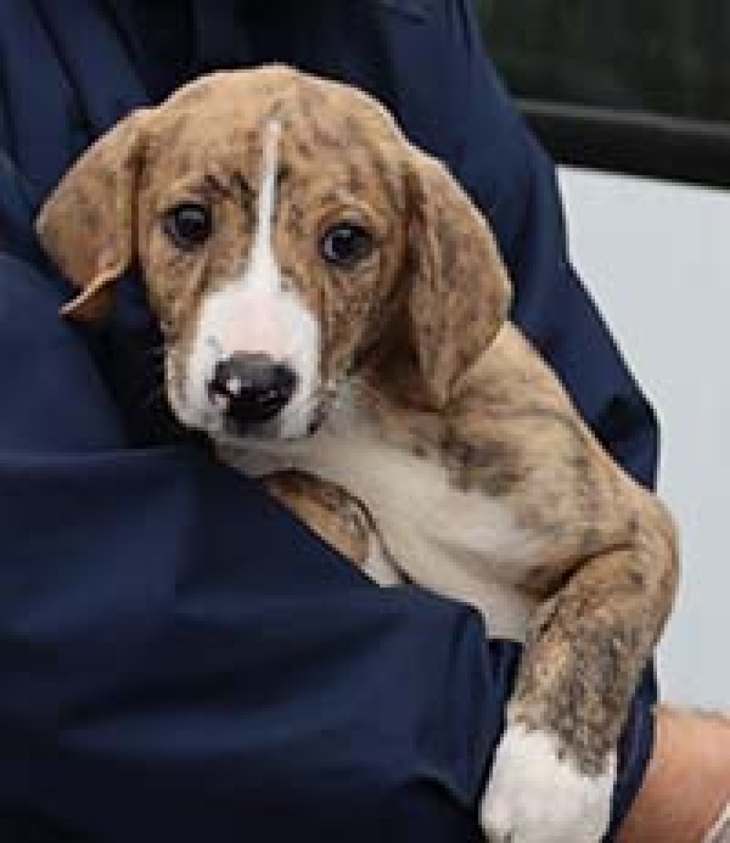 The Christmas Cheer Pups are adorable and are arriving just in time for Christmas! Their mom is a Yellow Lab and their dad is a brindle colored Hound. Their mom is a stray in rural Louisiana who rescuers are still trying to catch so they can spay her.