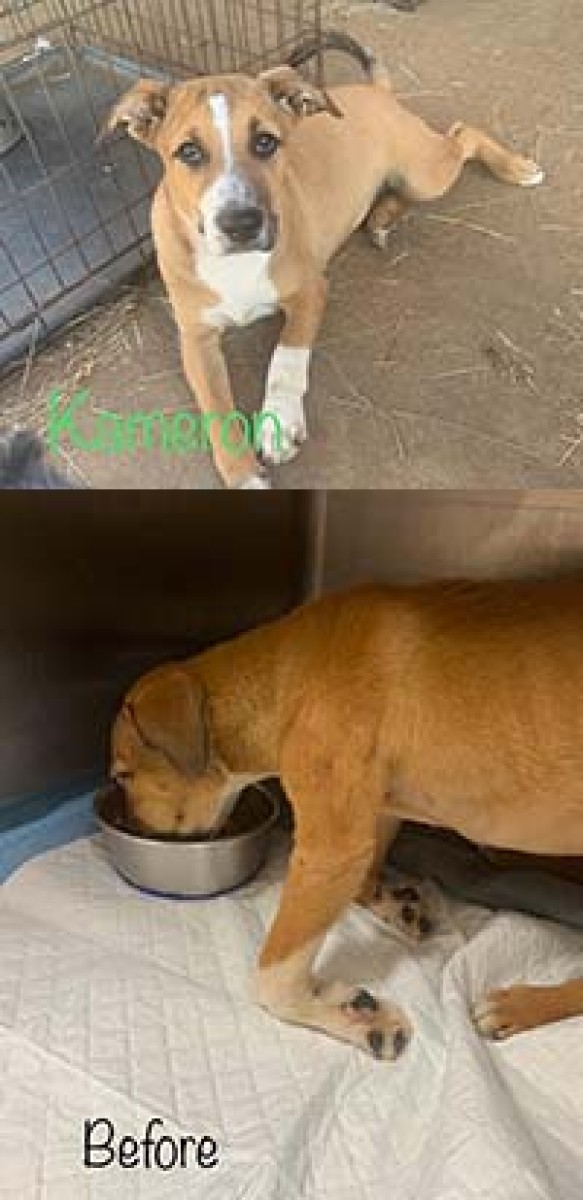 Kameron is a sweet little Pit mix. Kameron has a sad story. He was found on the side of the road in rural Mississippi and was unable to walk. His owner may have dumped him there. He slowly got better and started using his legs but he still trips sometimes and likely always will. The vet said that he has some nerve damage from some kind of trauma but there isn’t anything that can be done to fix it.