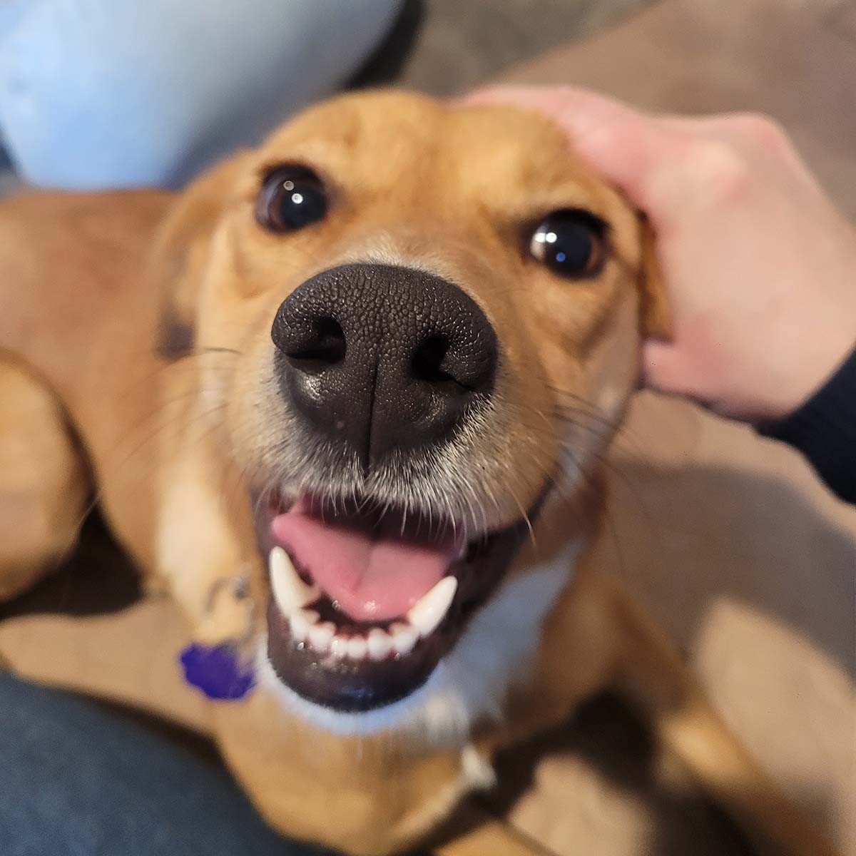 Lilly is a sweet lab mix. She came to her foster very timid, but it has been a delight to watch come out of her shell and really sprout. From the very start, she has always eager to cuddle up and stare deeply into kind human eyes. She loves resting her head on your lap and getting scratched. Though Lilly doesn't mind other dogs, she prefers her humans best. She is making great strides gaining confidence and will make someone a wonderful companion.