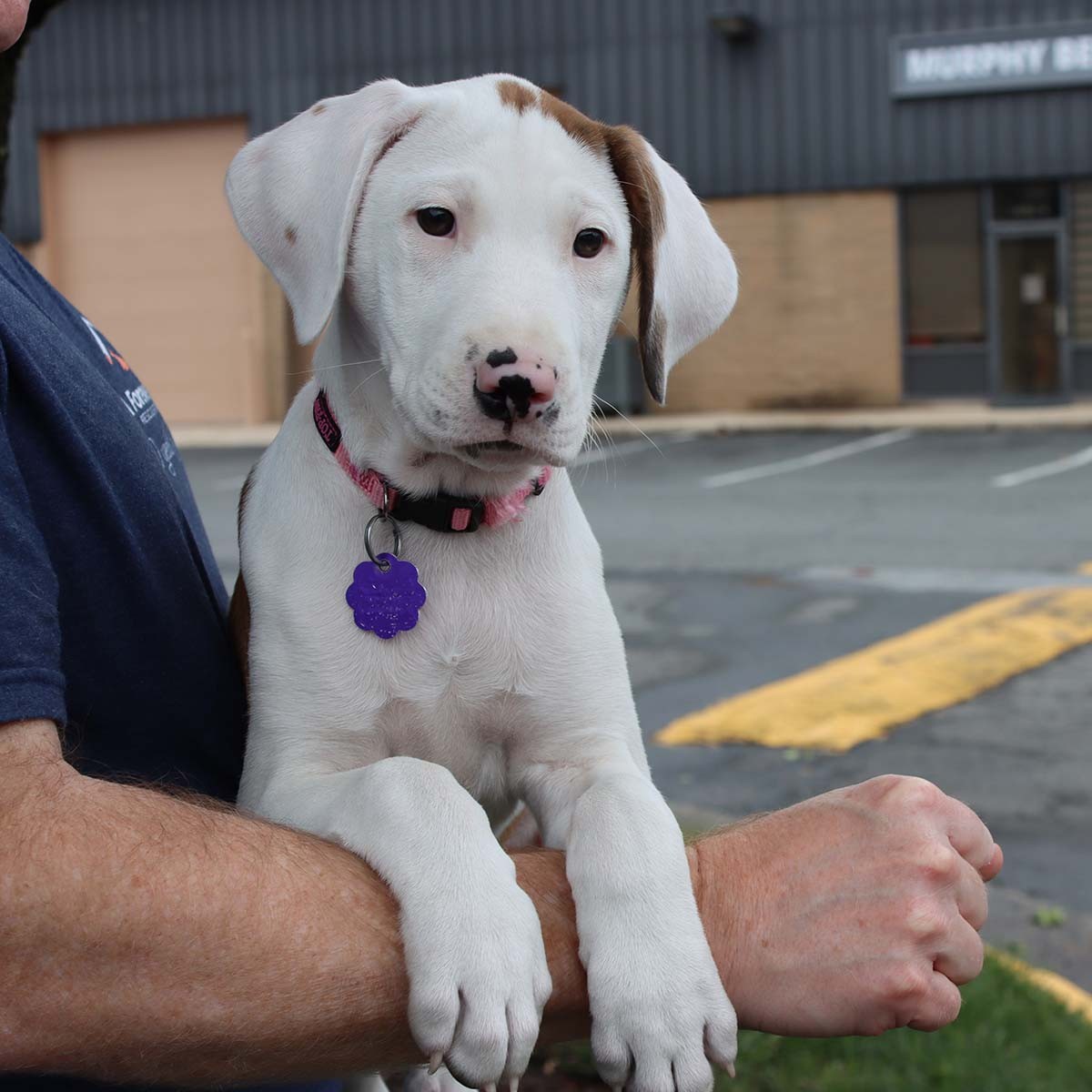 Loretta came to us with her sister Patsy from Louisiana where they were picked up as strays. After a warm bath, Loretta’s brindle and cream coat is stunning. She is a playful, inquisitive explorer and is drawn in any direction her spotted nose takes her! She is doing very well crate and collar/leash training and taking her private affairs outside. This beauty will be singin’ with joy once she finds her forever home…so c’mon y’all, please send in those applications and make her dream come true!