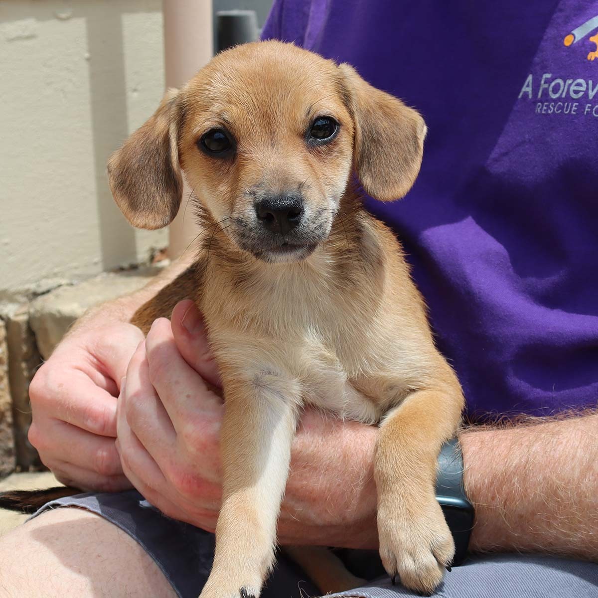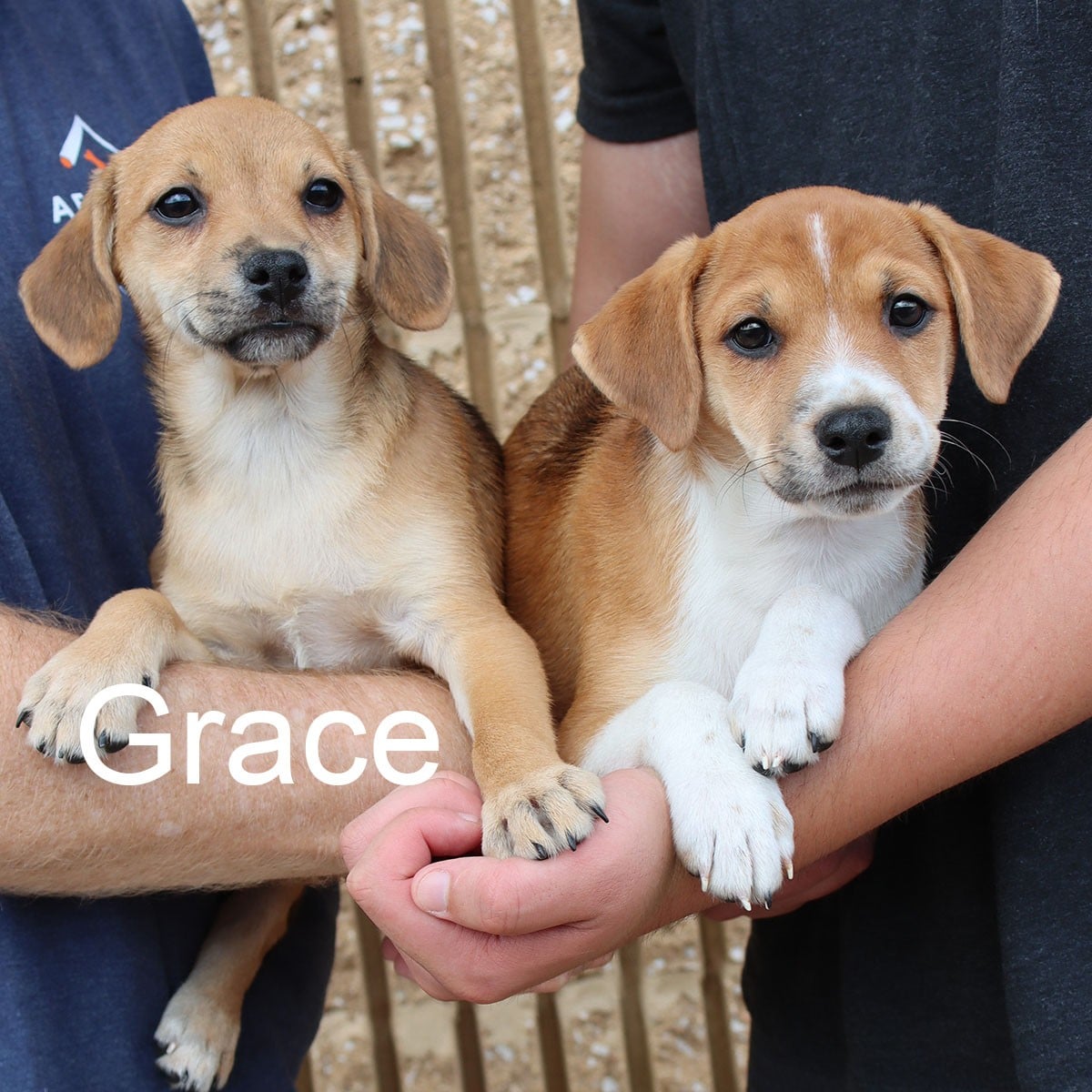 Grace and Georgia with left on a back road in rural Louisiana with their siblings. They are definitely beagle mixes and may have a small breed like Chihuahua mixed in. They are both very loving and really enjoyed the young girls that visited the at adoption. They are playful with each other but also enjoy snuggling on your lap.  They are nearly half grown so we know they will stay on the small side. You could not ask for better puppies!