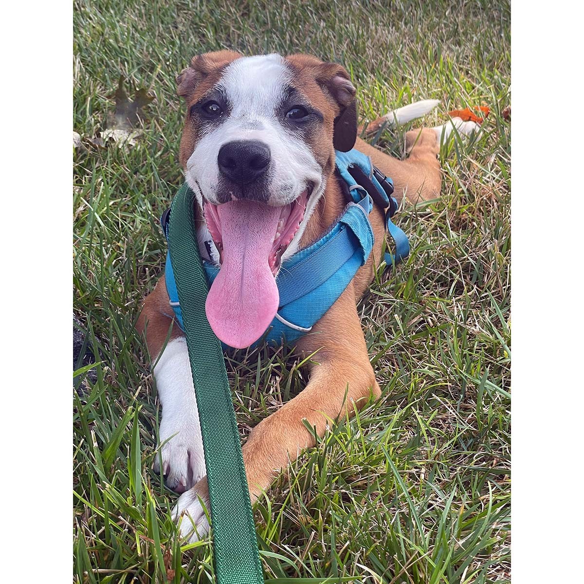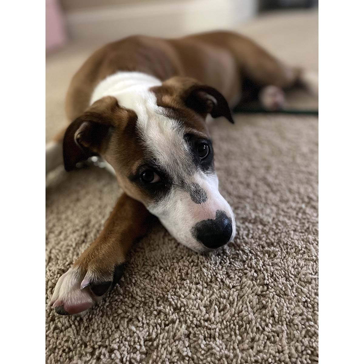 Hi, my name is Jupiter and I am most likely a boxer mix. So far I am settling into my new foster home nicely and I sleep through the night! I am a smart boy and already understand that I need to try to go to the bathroom outside. I absolutely adore playing with the young humans in my foster house, and really love playing with other dogs. I am working hard to win over the affection of the two senior dogs in my household and I’m doing a great job of respecting their boundaries. I love to chase and chew toys, but my most favorite thing is to drop them at your feet and then curl up in your lap. I am a snuggling love-bug and there is nothing I want more than to flop into your arms and rest my head in your lap. I am an excellent co-pilot in the car and rest peacefully in my crate at home when I need to have some quiet time to myself. I am a good eater and take treats gently. If you’re looking for a young, affectionate pup who has outgrown the puppy phase, but is still excited and curious about the world, come meet me!