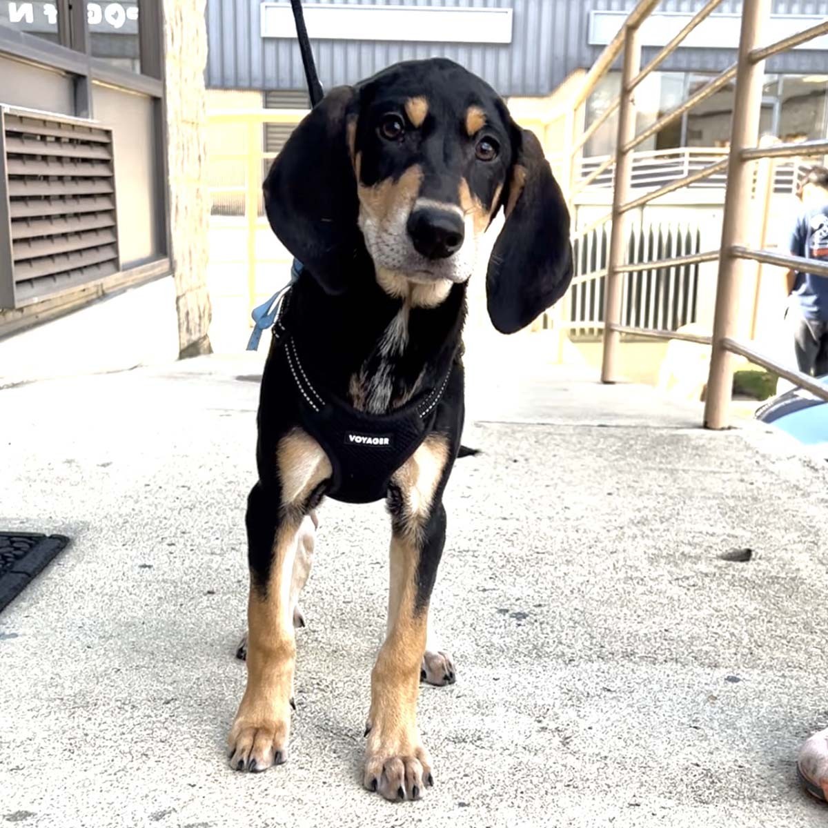 Rod is the handsomest boy with a great temperament!!! He is super happy to go play but will be just as happy to watch from the outside while hanging out with his people for scratches and cuddles. He is great on his leash and harness, sleeps through the night in his crate, and knows to sit and wait for his meals. He will go in his crate when asked and happy to get his treats for good manners. He is gentle and sweet and such a good boy!! We expect him to be less than 40 pounds full grown. He lives with his foster mom and two teenage children.