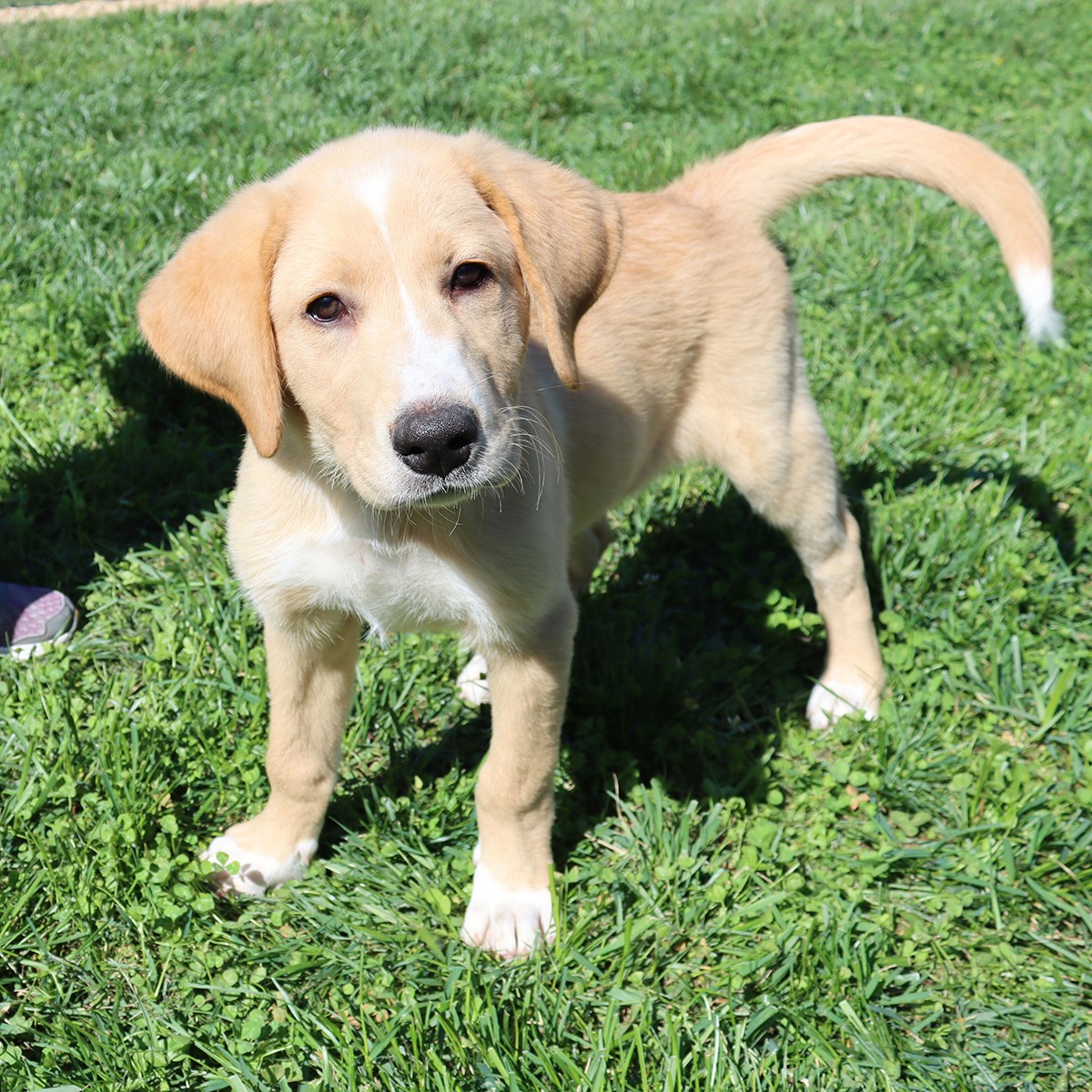 Hi everyone! I’m Logan and I’m quite possibly the cutest puppy who has ever lived! I grew up in a shelter, but since being in my foster home I’ve learned all about toys…and I love them! I also love people and food which makes training a breeze! The very first day I learned how to sit. A few days later I learned how to lie down in just five minutes! My foster mom says I’m handsome AND smart! She also says I’m a good boy because I keep my crate clean and sleep quietly through the night. I hope I can meet you at our next adoption event and show off all my new skills!