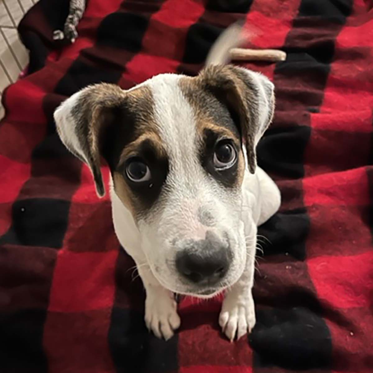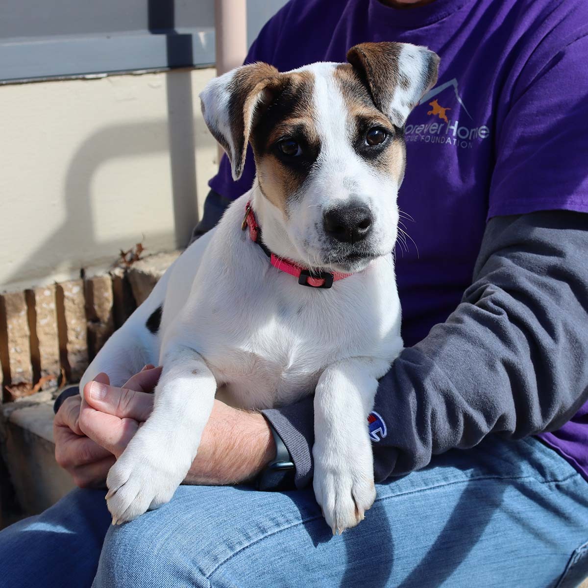 Robby was picked up by animal control in Louisiana and no one ever came to claim her. She is a sweet little pup who is very playful, spunky, funny and a little sassy. She is a beagle mix and has the personality of a Jack Russell terrier. She is pouncy and bouncy. Robby is a beauty, Just look at those beautiful eyes. She is learning some basic commands and learning how to be on the leash. She does well at night by herself in the kitchen and she can quiet herself down when alone. Please come see her at the doggie adoptions. She is so adorable and has a great personality.