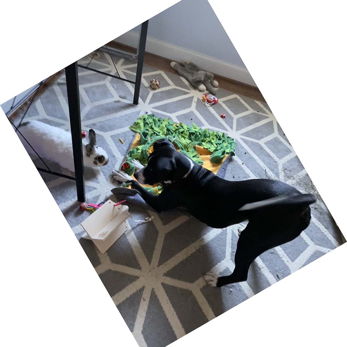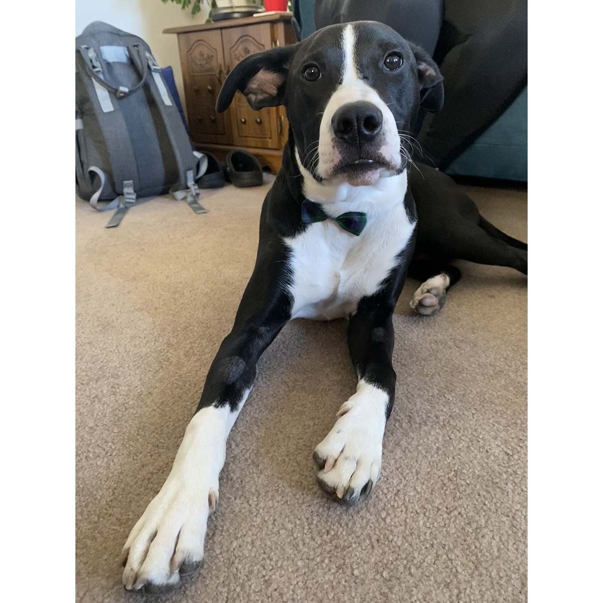 This goofy, super playful boy is Queso! He’s also a big time cuddler! Queso loves getting hugs and kisses. He enjoys playing with other dogs and has done very well in social situations. Queso’s great with kids and does well with other/smaller animals like bunnies. Queso is well behaved, knows basic commands and is house and crate trained. He would do great in a family with kids.