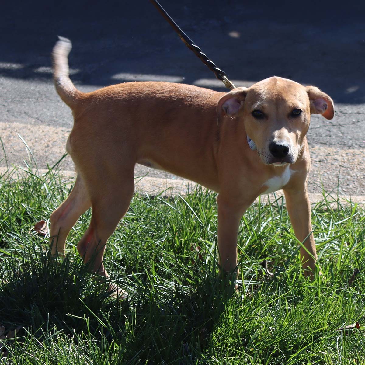 Harleigh is a wonderful puppy that came to us from Louisiana. She is very sweet and loves to cuddle with her head on your shoulder. She is an expert at tail-wagging whenever she meets new people and seems very comfortable with kids. While she loves to be held, she is confident and comfortable playing on her own as well. Harleigh has beautiful eyes and expressive ears that stand out when she is curious about something. Her tail is extra-long and has lovely touches of black that are distinctive and compliment her soft brown body. Harleigh has dainty paws that indicate she will likely be a medium size dog when fully grown. She will be a perfect family pet or a best friend to someone special!