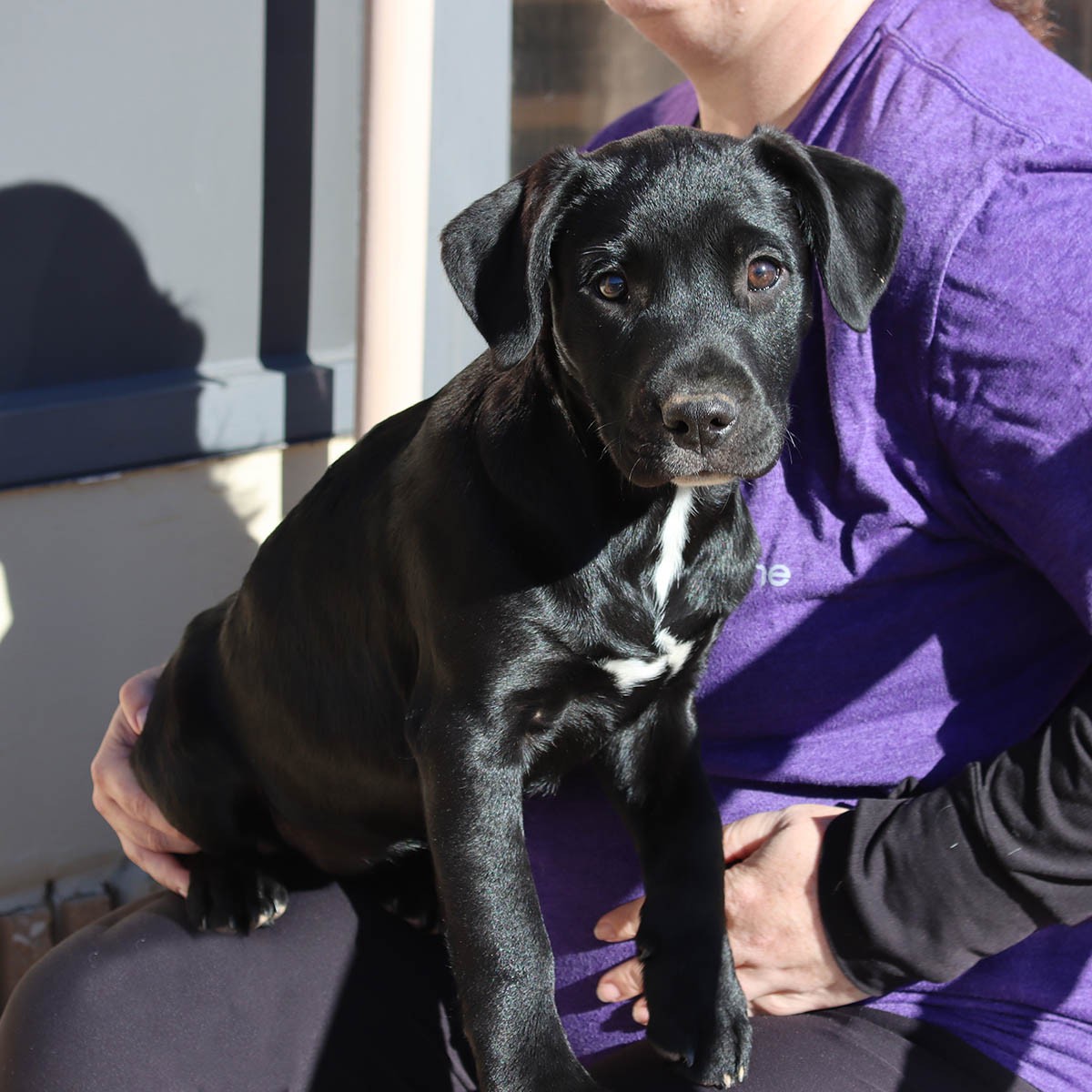 Mumsie and her siblings were being sold at Walmart by a man. Thankfully rescue stepped in. Mumsie is very lab like. She has a gorgeous, black coat. She is lively, playful and inquisitive. This smart little girl is great with kids and other dogs. What more can you ask of a little pup!