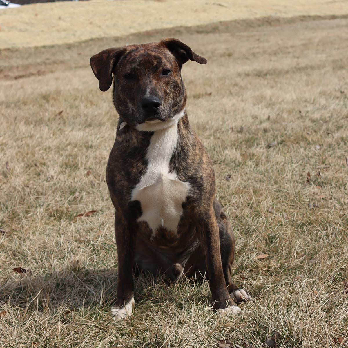 Hi! My name is Jaxon or Jax! If I must say so myself, I'm a very handsome guy! I love playing tug of war with you or another pup. I love rope toys because they don't snow all over the house and they clean my beautiful teeth. I'm completely housebroken and crate trained. I prefer to snuggle with you in bed, but will go in the crate when you go out. I get along with children an I'll run after anything you throw and will mostly bring it back. I'm very smart and learned the doggy door in 1 day. I know sit, come, move and wait and am patient when getting let put the door. I have some lab in me and a surprise gene that gave me my beautiful brindle color. No health issues, I sleep late, I love naps with my people, and I love treats!
