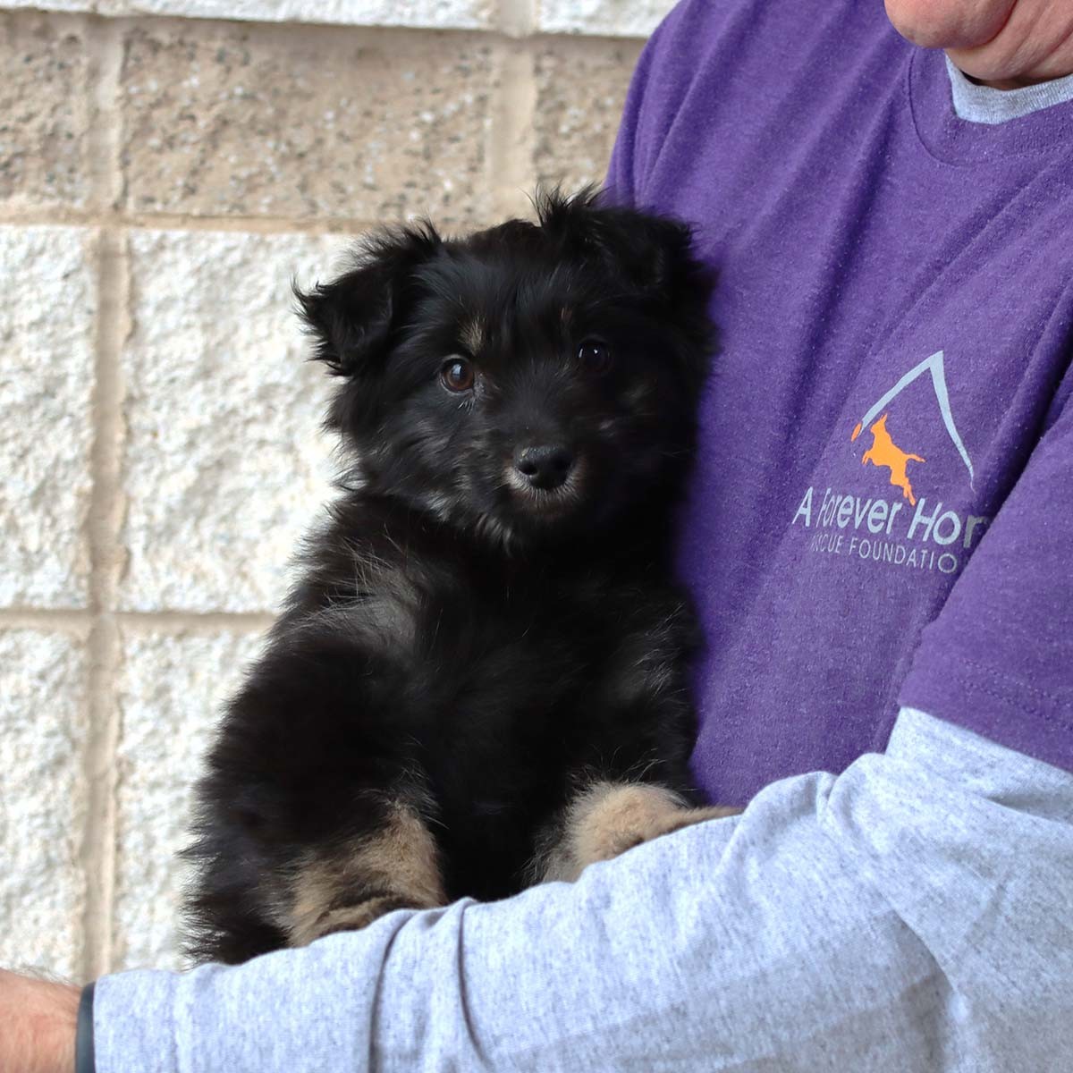 Crinkle is not as outgoing as his siblings. He sometimes sits backs and watches his brother and sisters and then jumps in to play. He has mastered 4 stairs, but then stops and turns around. He has fluffy hair and will be a medium sized dog when full grown. He can’t wait to find his forever family to cuddle with.