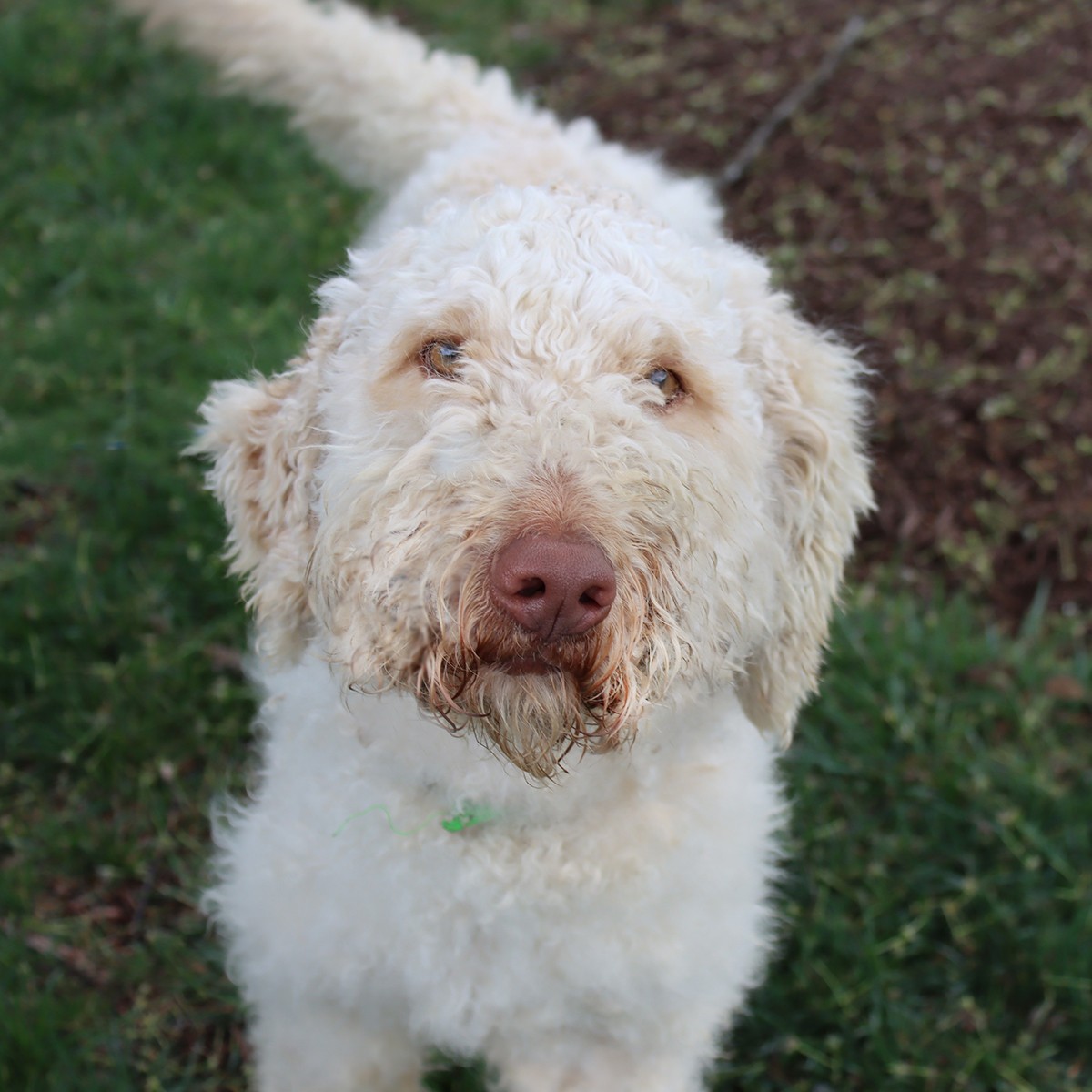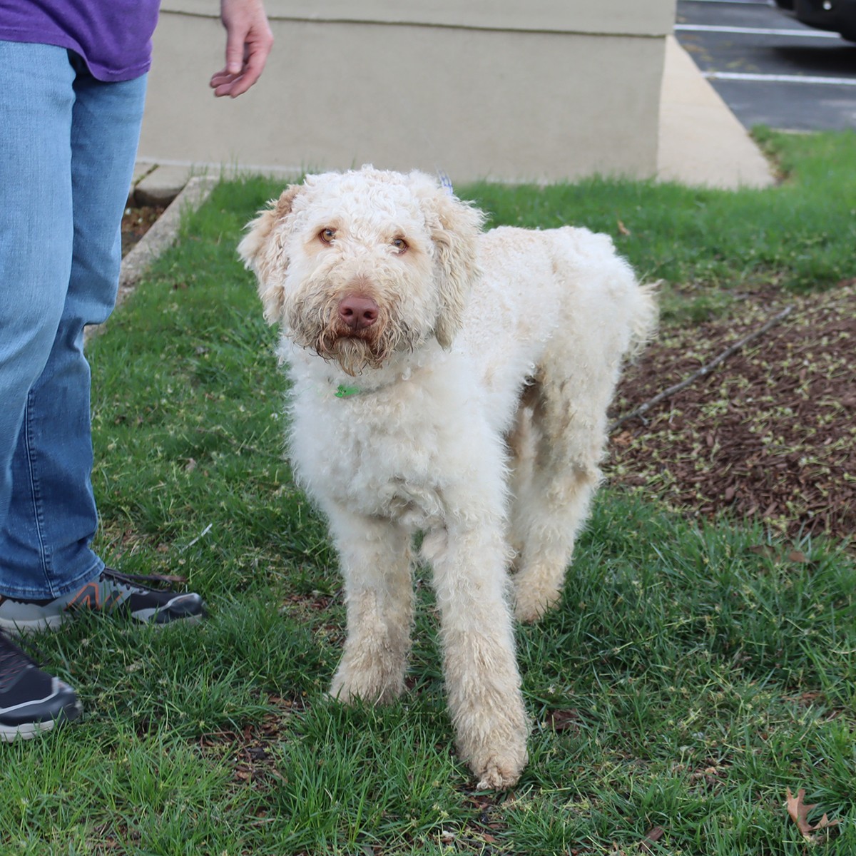Jaxon is a Golden Doodle. Hi current picture shows him shaved down after they removed all of the mats. He now is a lot more comfortable and will be even more handsome when his fur grows back. He was given up by his owner who was not able to give him the time he needed. Jaxon is just the sweetest boy. He loves to go on walks and is an absolute saint on leash. He has never met anyone he doesn't like. He's great with big and little dogs and does well around children. I can't express enough how sweet he is. He has been so great since the day we've gotten him. If you want a great companion, please inquire about meeting him!