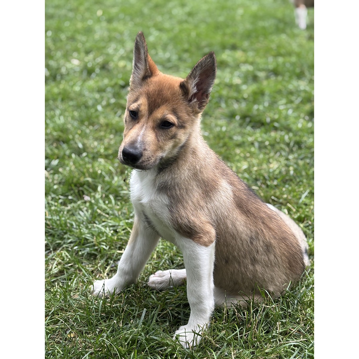 Magnolia is objectively a gorgeous puppy, with the softest fur and beautiful facial markings. She is calm, reserved, playful and gives the sweetest puppy kisses. She will do well in any home where she will be loved and led. Magnolia is excelling with her crate and potty training (sleeping through the night) and learning to walk on a leash. Online puppy calculators predict she will be about 60lbs full grown. Come meet this darling puppy! She will melt your heart.