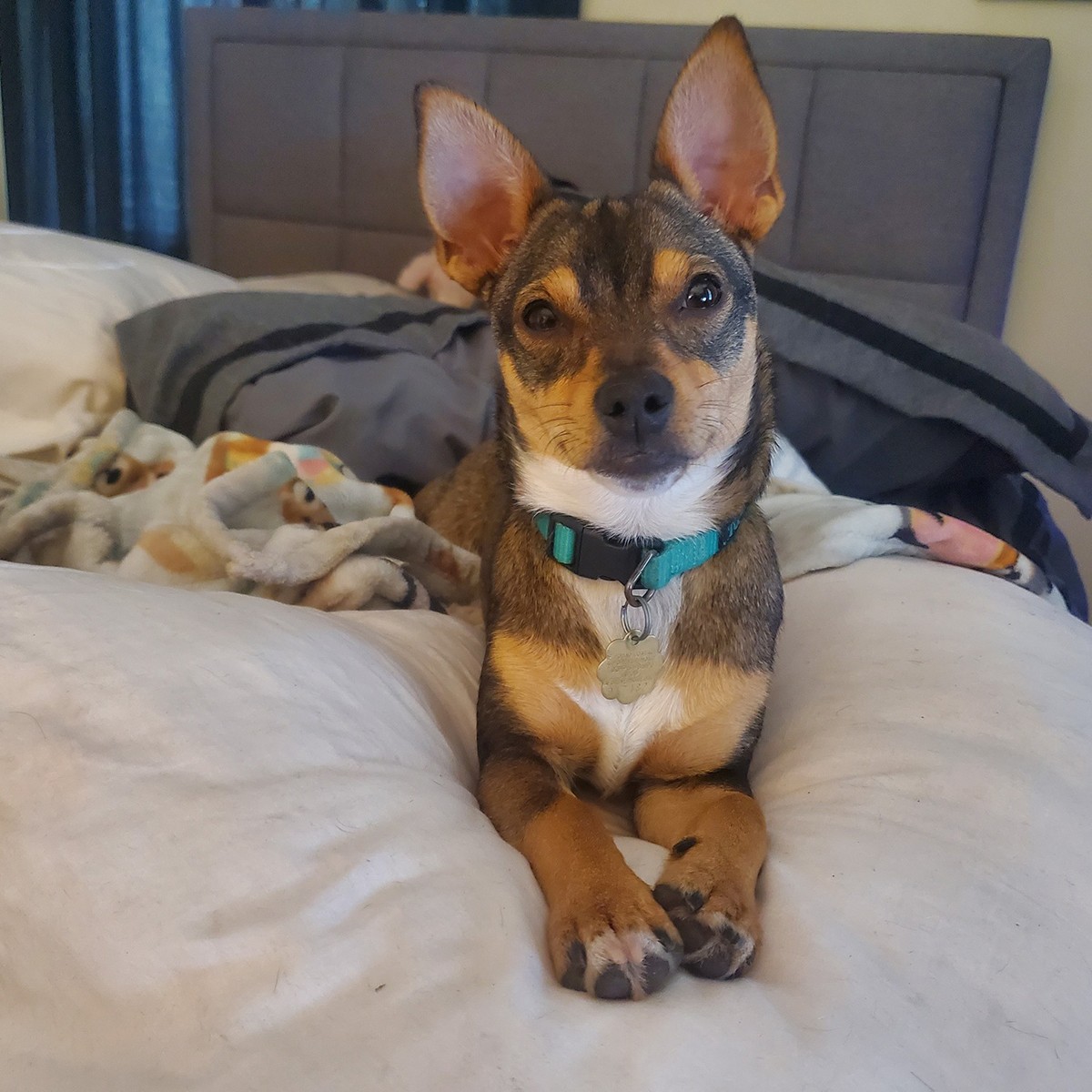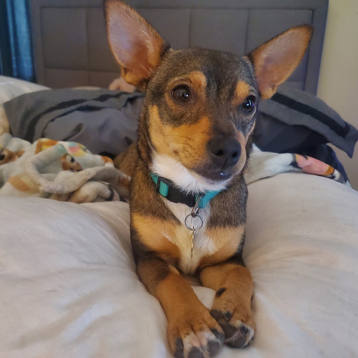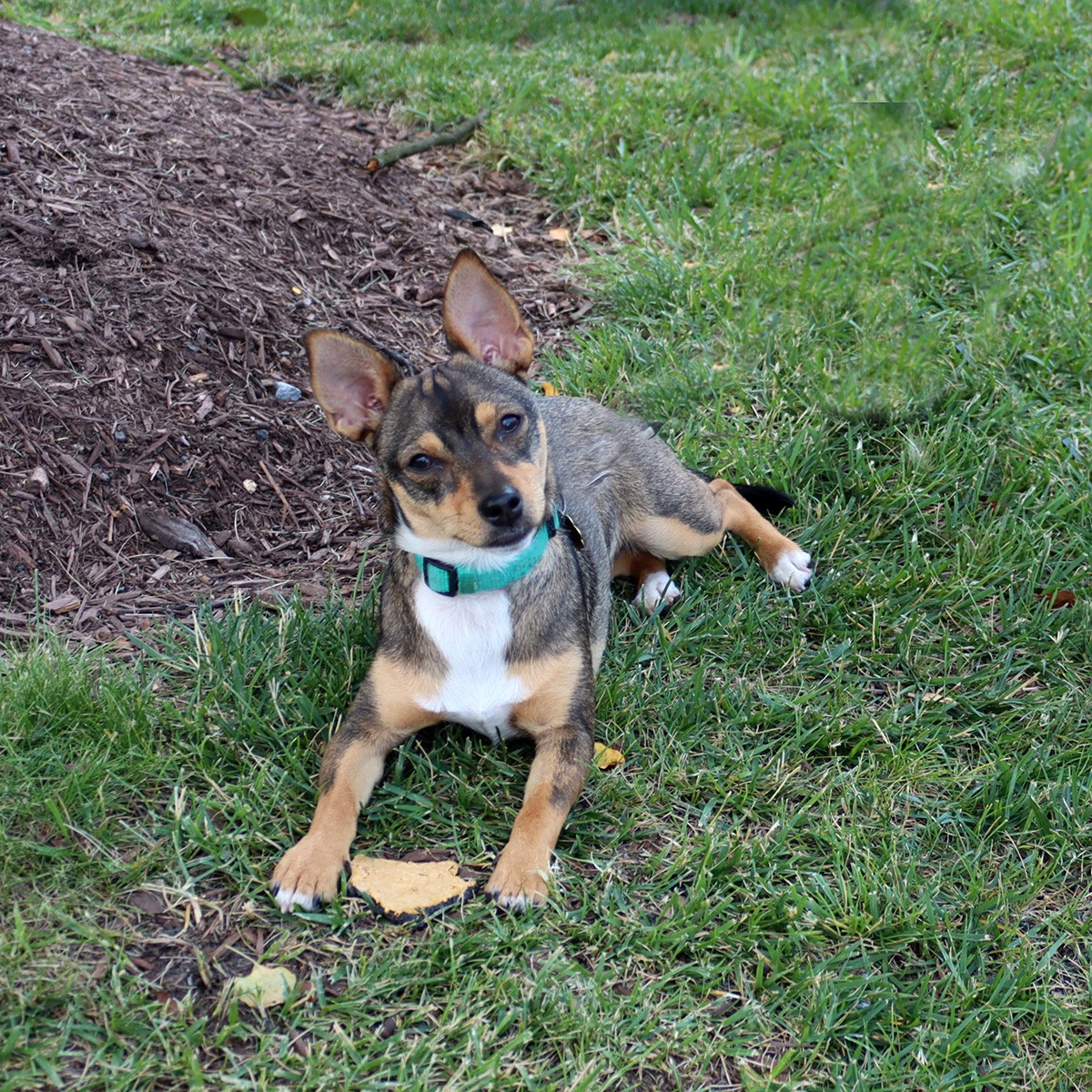 This adorable little girl is Brandy. She was given up because she was too active for her elderly owners, but is lots of fun for a playful friend. She is wonderful with other dogs and lived with a cat. This smart girl is crate trained and is working on house training and doing well. She loves people and just wants a family that will give her all the love she needs.. She absolutely LOVES other dogs as well.