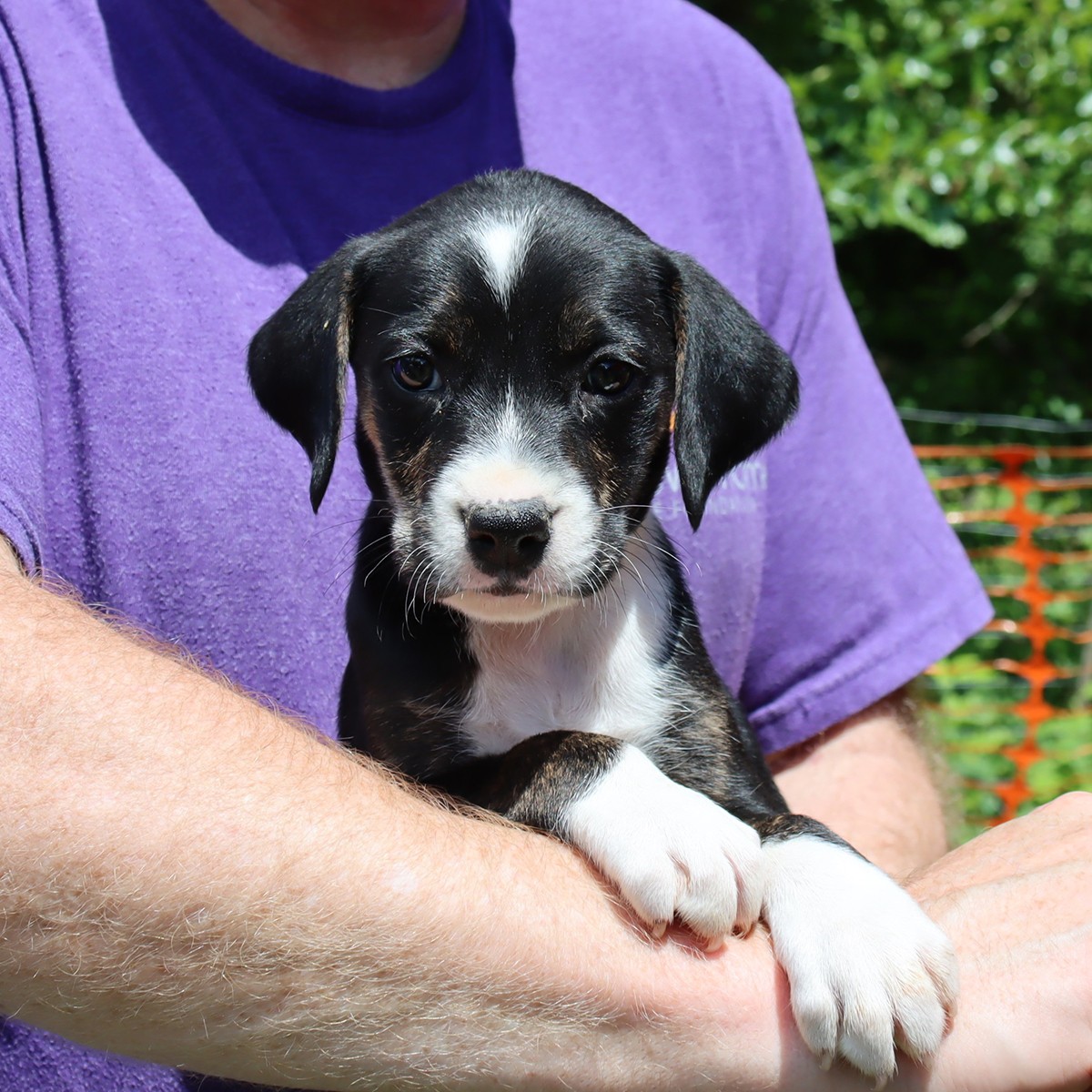 Lou came to AFH with his siblings. This tiny little guy has a Cocker Spaniel mom and we suspect dad was a roaming beagle. Lou is a sweet, calm little boy. He really enjoys lap time, but also loves to play with his siblings. If you want a snuggle buddy, look no further.