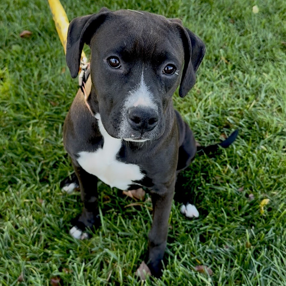 Erica is a gorgeous girl. She is smart and attentive. Running and playing with her sisters in the yard is the best. She is warm and loving with all the people she meets. We know her mom is a pure-bred fawn Boxer with a black muzzle. Erica has her mom's face in a gorgeous black and white coloring. This wonderful girl would enjoy a home with children or other dogs, but she could also be happy as the center of a small family. If you are looking for an intelligent, loving pup that will fit in just about any family, she is the dog for you!
