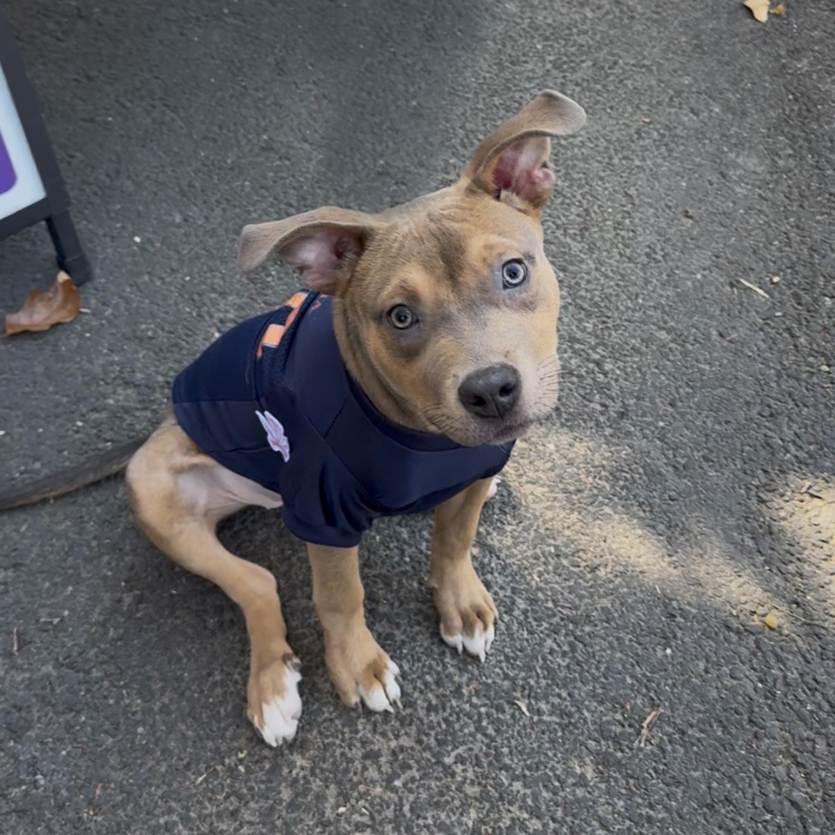 Meet Beanie Weenie! She is a gorgeous Pit bull mix pup. She’s a total sweetheart—playful when it’s time to play, and the best cuddle buddy when it’s time to nap. Her favorite spot is right on the bed next to you. This smart little girl is already crate trained, and only barks if she needs a potty break. She sleeps through the night and hasn’t had a single accident in the house yet. She’s a fast learner too, Beanie already knows “sit” and “stay”. She gets along wonderfully with my dog and other people, making her the perfect addition to a family with furry friends. Beanie Weenie isn’t just cute she’s the whole package. Whoever adopts her will be the luckiest family in the world. Beanie Weenie was originally found as a stray on the side of the road in a plastic bag discarded like trash before she was sent to rescue.
