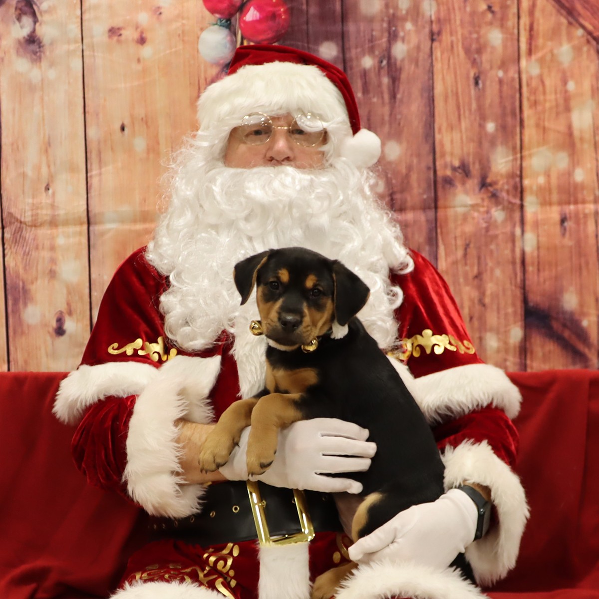 Peyton's Pups were born in AFH's care on 10/11/2025. Honey is a beautiful pup  with a coat of glossy black and tan framing classic puppy dog eyes. Honey is always up for a playful romp with her sibs or an afternoon snooze in the sun.  This gorgeous girl is destined for be someone’s love at first sight—!