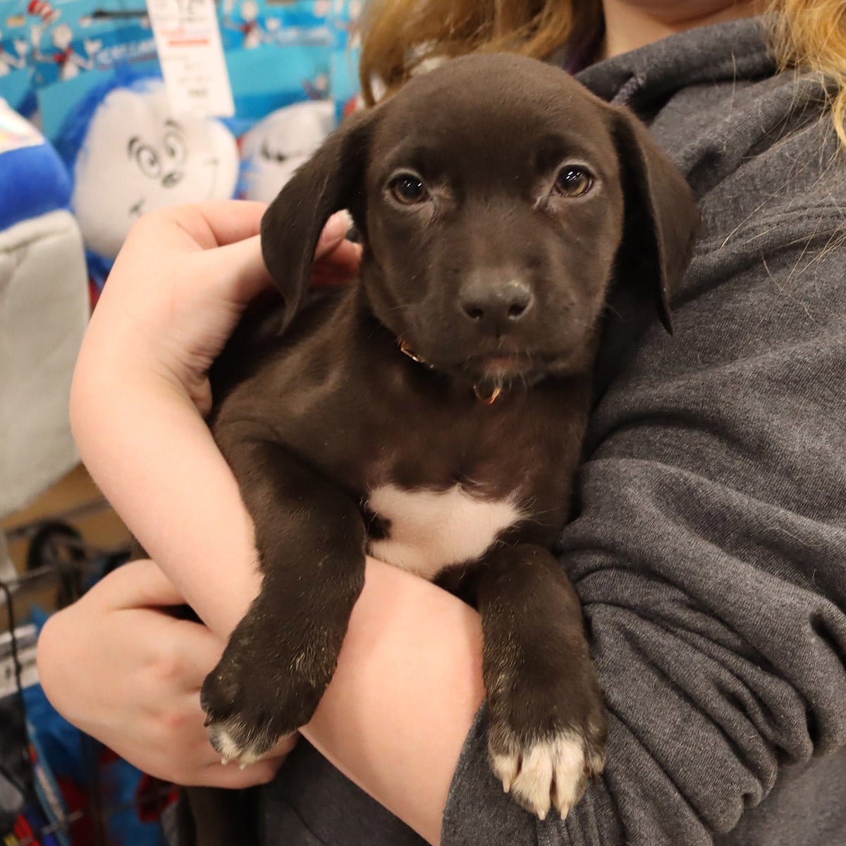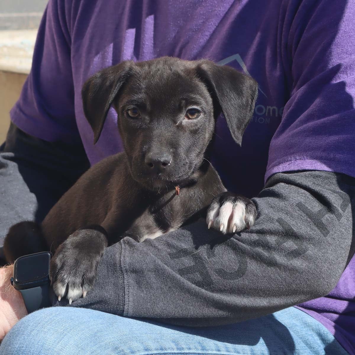 If you’re looking for the secret ingredient to complete your family, look no further than Nutmeg! While her name might suggest a hint of spice, this little girl is 100% sweetness. Nutmeg is a stunning puppy with a coat as dark and glossy as a midnight sky. Don't let her sophisticated look fool you, though—underneath that sleek black fur is a soft, wiggly belly just waiting for rubs.
